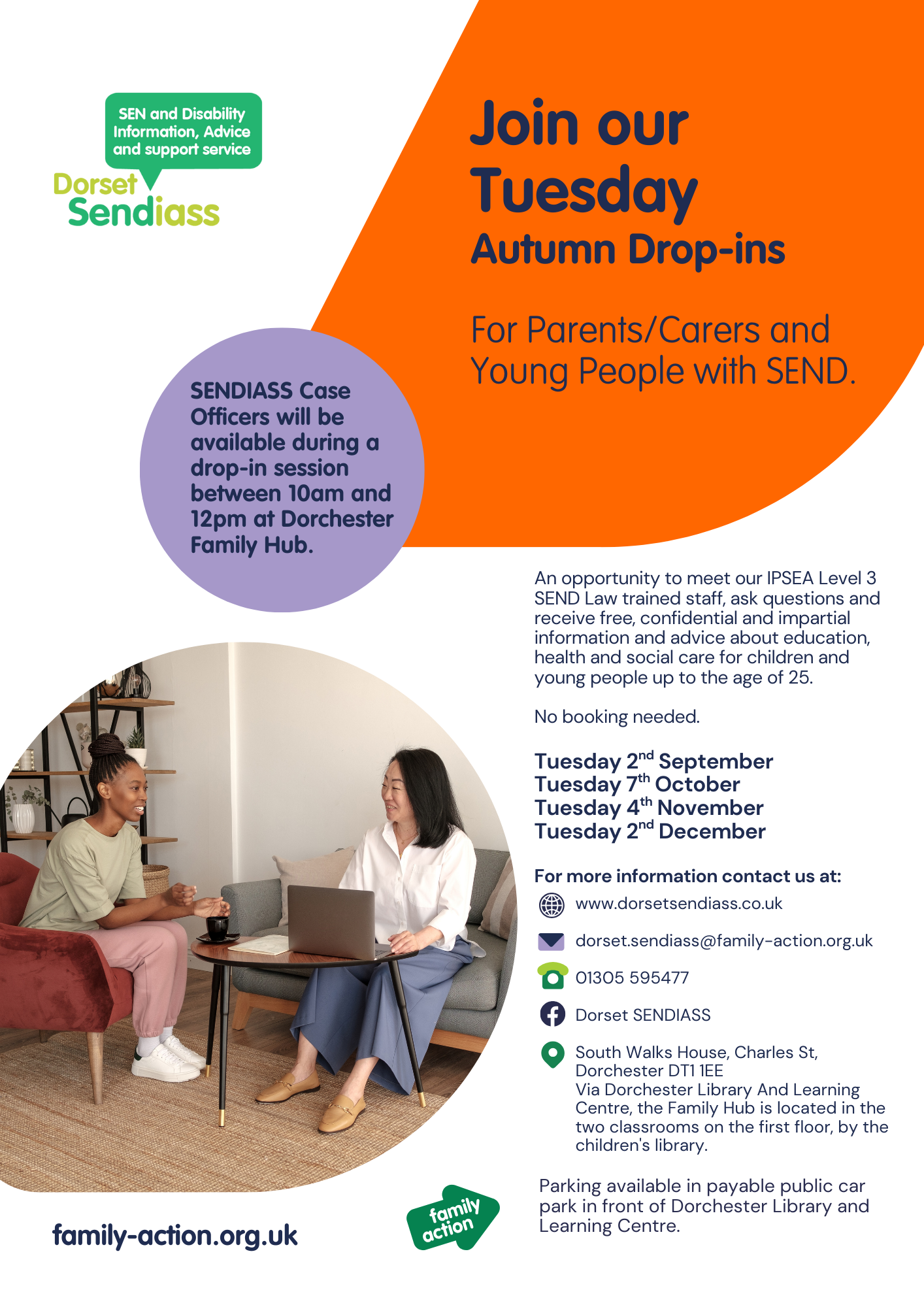 - Email us at dorset.sendiass@family-action.org.uk