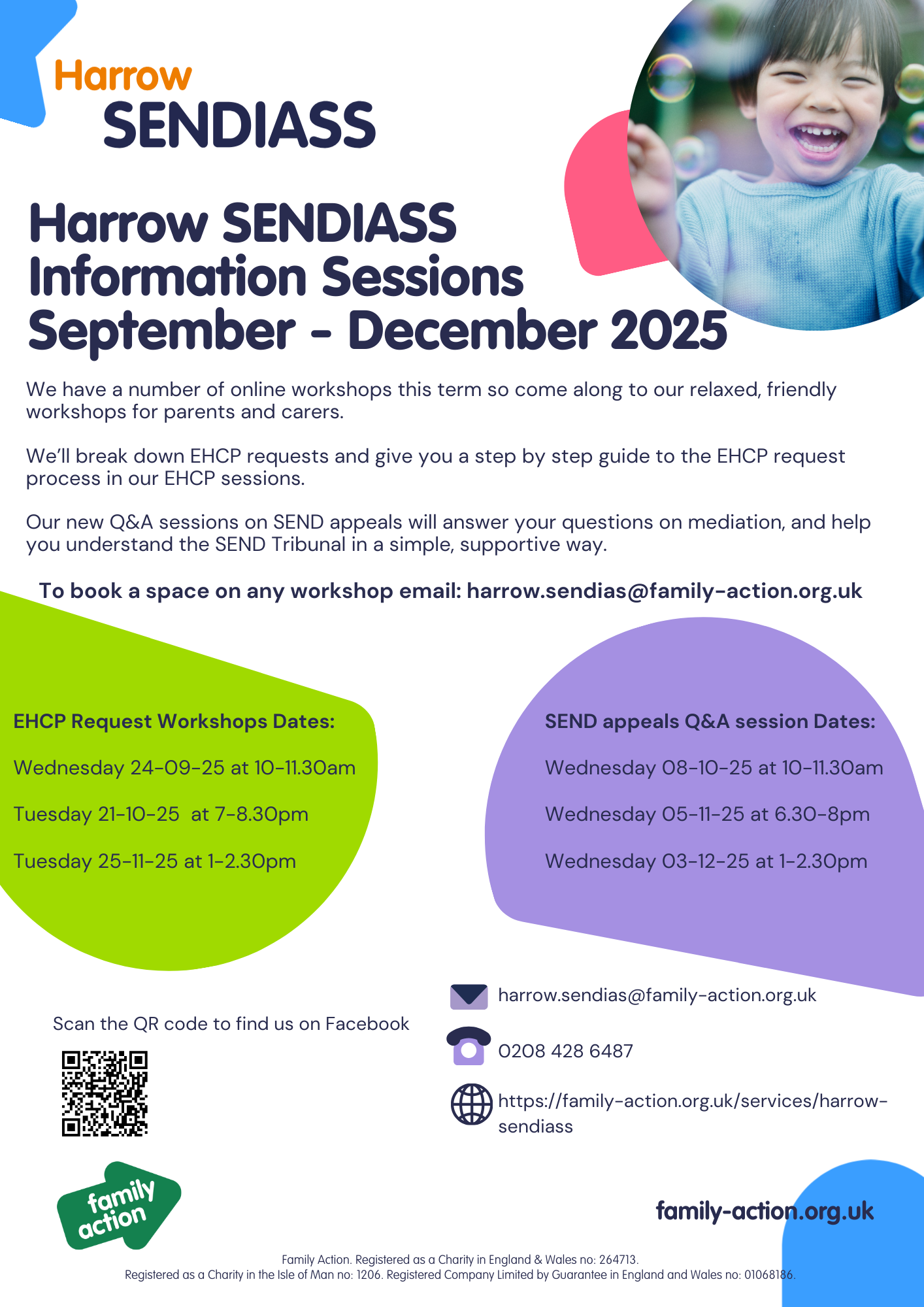 Harrow SENDIASS is a free, impartial and confidential information, advice and support service for children and young people with special educational needs and disabilities (SEND), and their families.